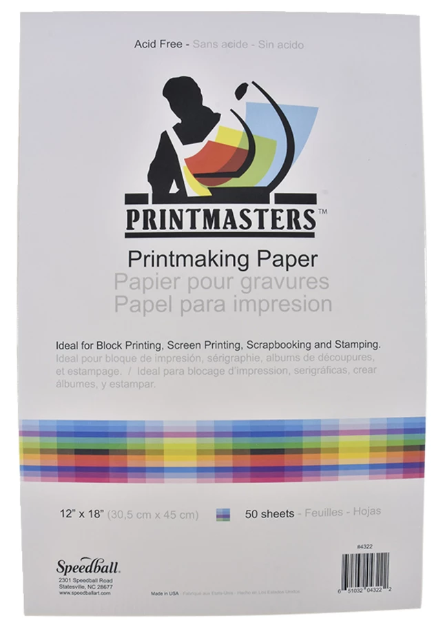 Speedball Block Printing Paper measures 12 x 18 inch is designed especially to add intensity and texture to linoleum and woodblock prints. Paper has a delicate marbled appearance and is softly toothed and absorbent. It weighs 70 lb and can be used in screen printing and stamping. It is sold as 50 per pack.