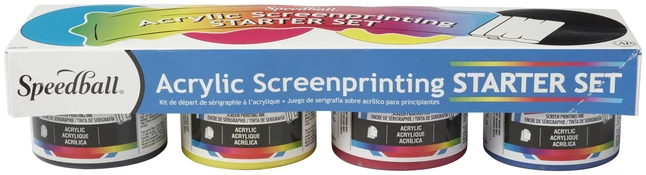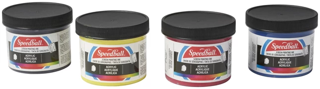 Speedball Permanent Acrylic Screen Printing Ink Set in assorted comes in a jar of 4 oz capacity. Set of 4 includes black, process yellow, process cyan, and process magenta colored inks. Non-flammable ink is for use on paper, wood and cardboard. Ink with no solvent and offensive smell can be screen printed or painted on with a brush. Ink having opacity, brilliance, flexibility offers permanence of oil-based inks. Ink can be cleaned up easily with water and is ideal for signs, posters and prints.